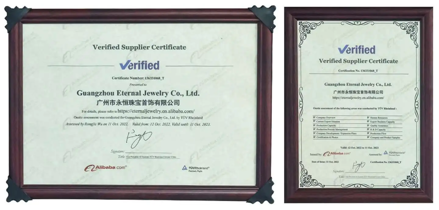 Guangzhou Eternal Jewelry Co., Ltd. (Eternal Jewelry) is a jewelry manufacturer enterprise certified by TÜV Rheinland and Alibaba. We have excellent commercial reputation, professional jewelry production equipment and team. Our products and services have been widely praised and trusted by customers in China, Europe, and the United States.