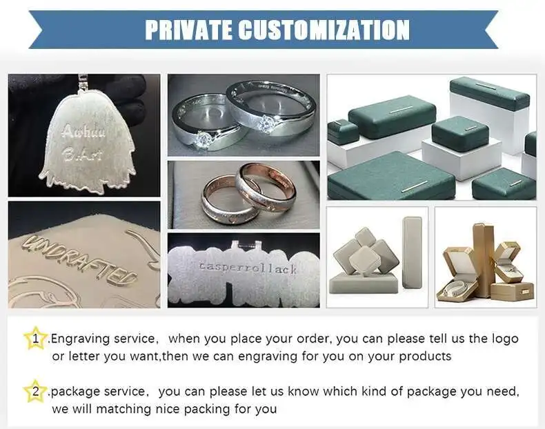 | Services | 1. Provide personalized customization. 2. /Name engraving. 3. Warranty service (no additional material cost and non-human damage) 4. Provide jewelry repair. 5. Provide production video and product video. 6. Provide gift box customization. |