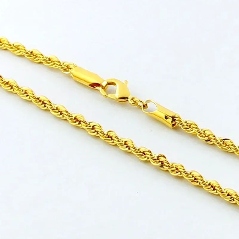 Hot y2k 18K Gold Necklace 4MM Rope Electroplating Chain