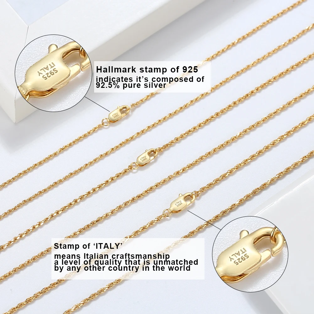 ORSA JEWELS Italian 925 Sterling Silver Rope Chain Necklaces 14K 18K Gold Plated